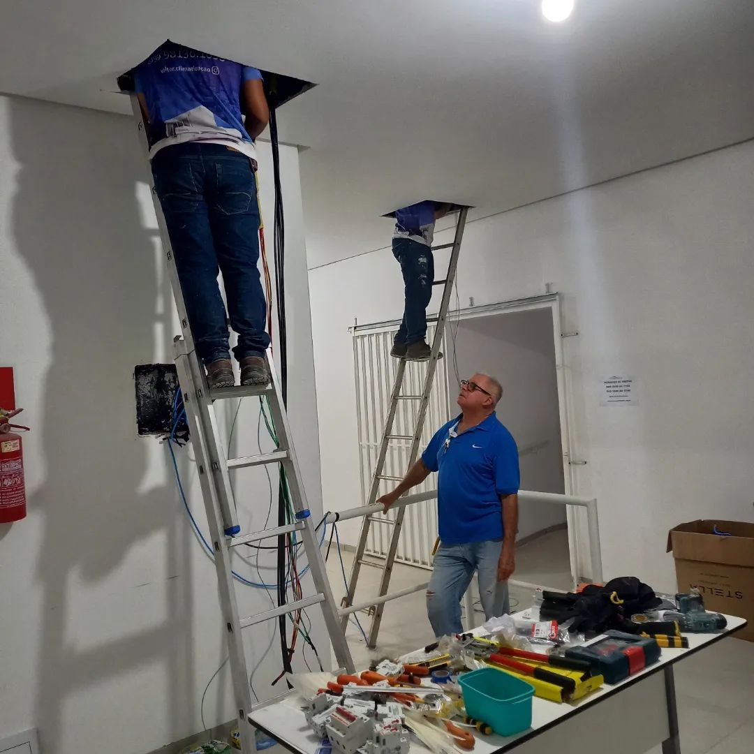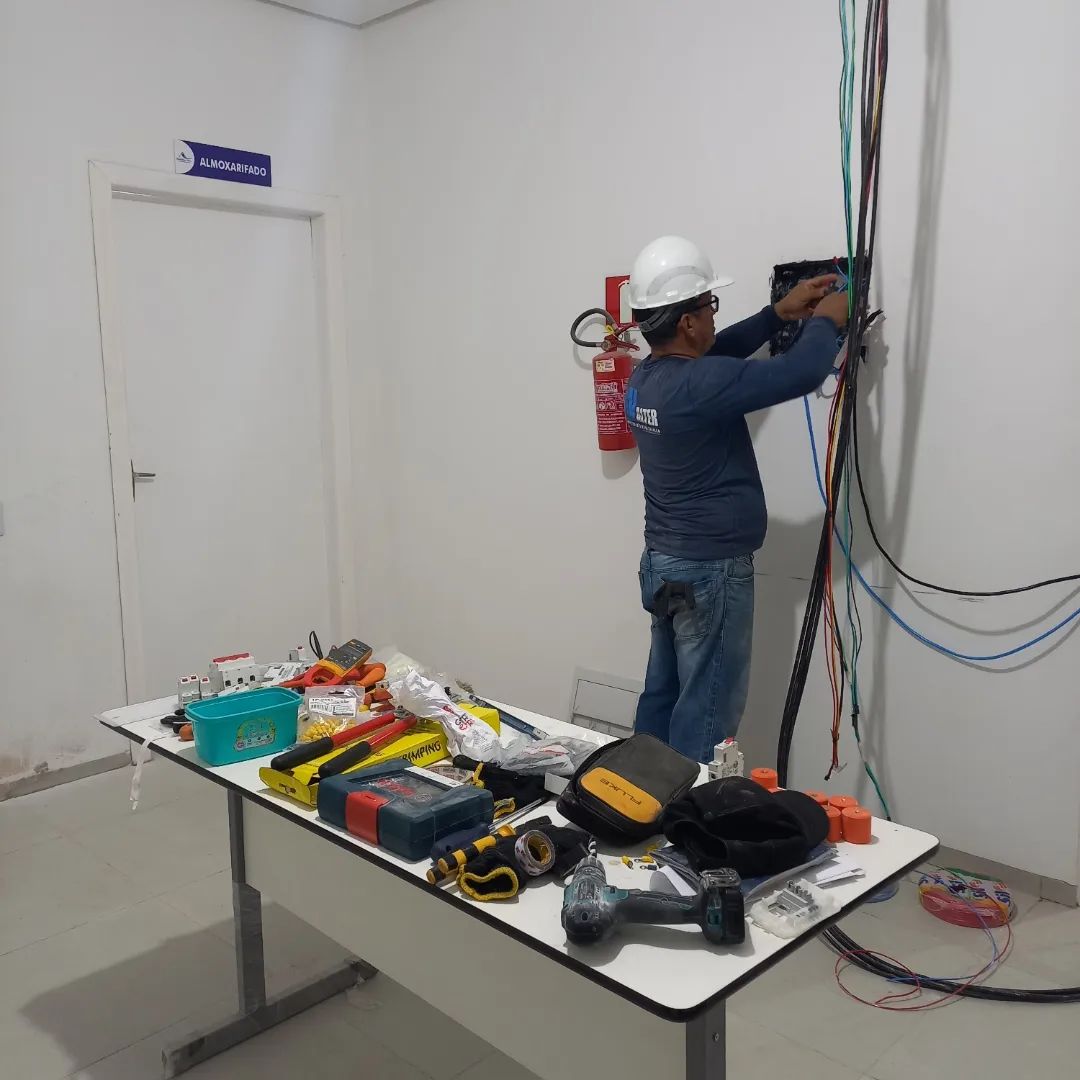 A parte elétrica deverá estar concluída até o final desta semana ficando pendente apenas a parte de retoques na pintura e colocação de placas de gesso para tapar os buracos que foram abertos.