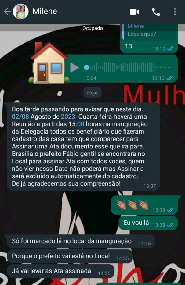 Ainda não se sabe se o gestor municipal tem conhecimento das ameaças feitas pela autora da postagem. Também não se sabe se a tal Milena tem mesmo poder para excluir ou incluir famílias no cadastro de moradias destinadas a pessoas humildes do município.