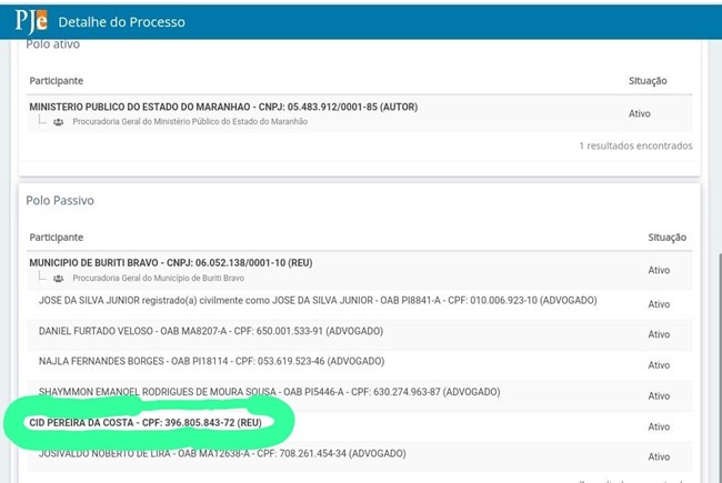 Nossa equipe tem feito uma varredura nos nomes de ex gestores de municípios maranhenses que administraram suas cidades entre os anos de 2013 a 2020. Nesse primeiro episódio acompanhamos a atual situação jurídica do ex-prefeito do Município de Buriti Bravo – MA, Dr. CID PEREIRA DA COSTA, mas conhecido como CID COSTA, no qual constatou que o mesmo responde há cerca de 06 (seis) Ações Civis Públicas no TJ – MA, dentre elas destaca-se a AÇÃO CIVIL DE IMPROBIDADE ADMINISTRATIVA nº 0800758-52.2020.8.10.0078 - Dano ao Erário, que tem a finalidade de ressarcir ao município vantagem indevida obtida pelo ex gestor, além de outras ações que seguem tramitando na Comarca do referido município