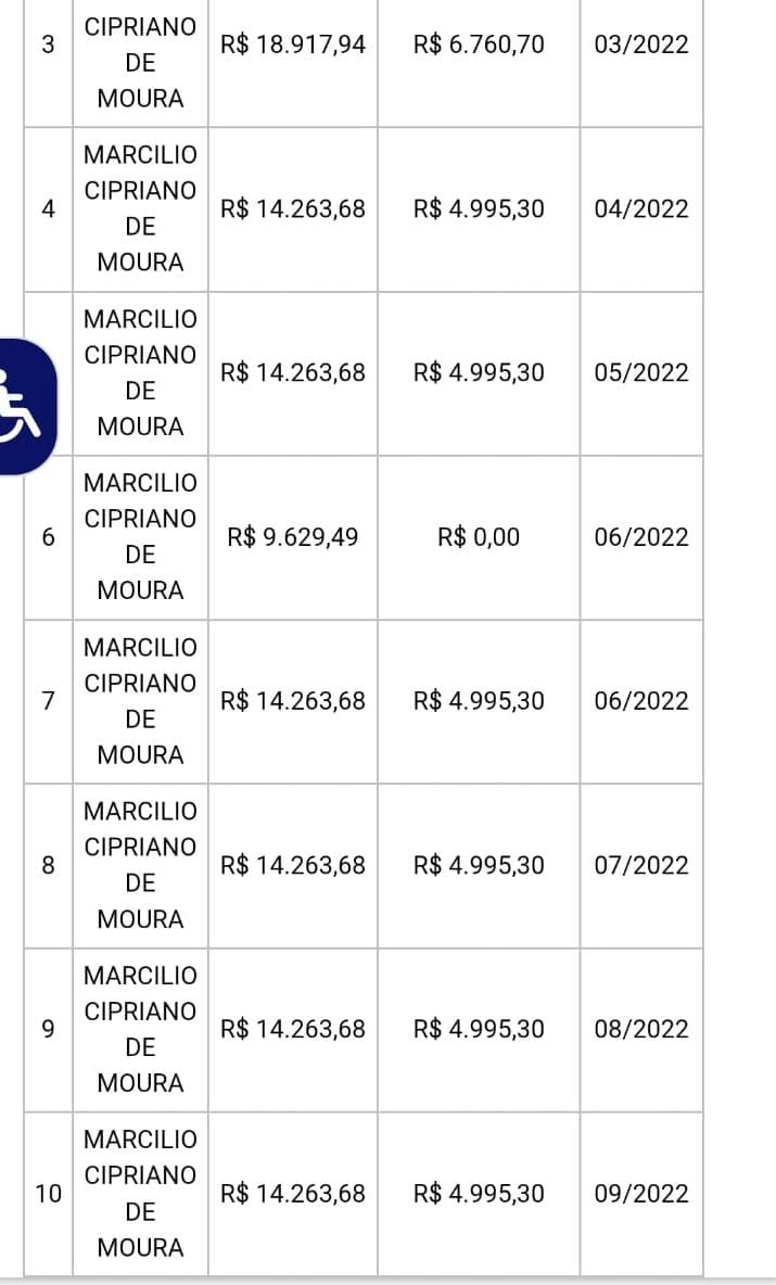 Nossa equipe apurou que Marcilio Cipriano tem sido beneficiado no esquema mesmo residindo em Picos Piauí, cidade onde o mesmo mantem empresas ativas. Conforme seguem comprovantes abaixo o mesmo também tem sido beneficiado com salários altíssimo, chegando em um montante mensal de $ 19.258,98 (dezenove mil, duzentos e cinquenta e oito reais e noventa e oito centavos), mesmo sem se quer pisar na Assembleia.