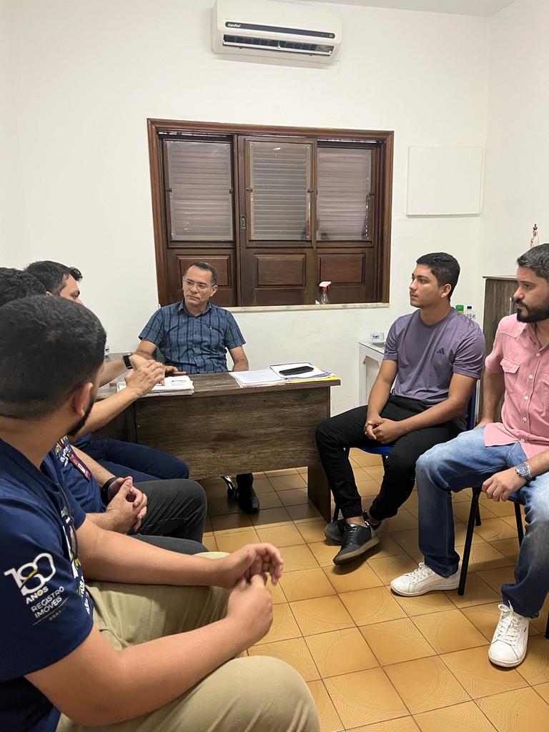 A Prefeitura Municipal de Caxias, por meio da Secretaria de Políticas de Regularização Fundiária, na oportunidade representada pelo secretário da pasta, Professor Chiquinho e os colaboradores, Dr. Hélio e Victor, reuniram-se, hoje, 27 de outubro, com o Chefe da Serventia do Cartório de Registro de Imóveis do município, Sr. Aurino Luz e dois colaboradores do referido cartório.