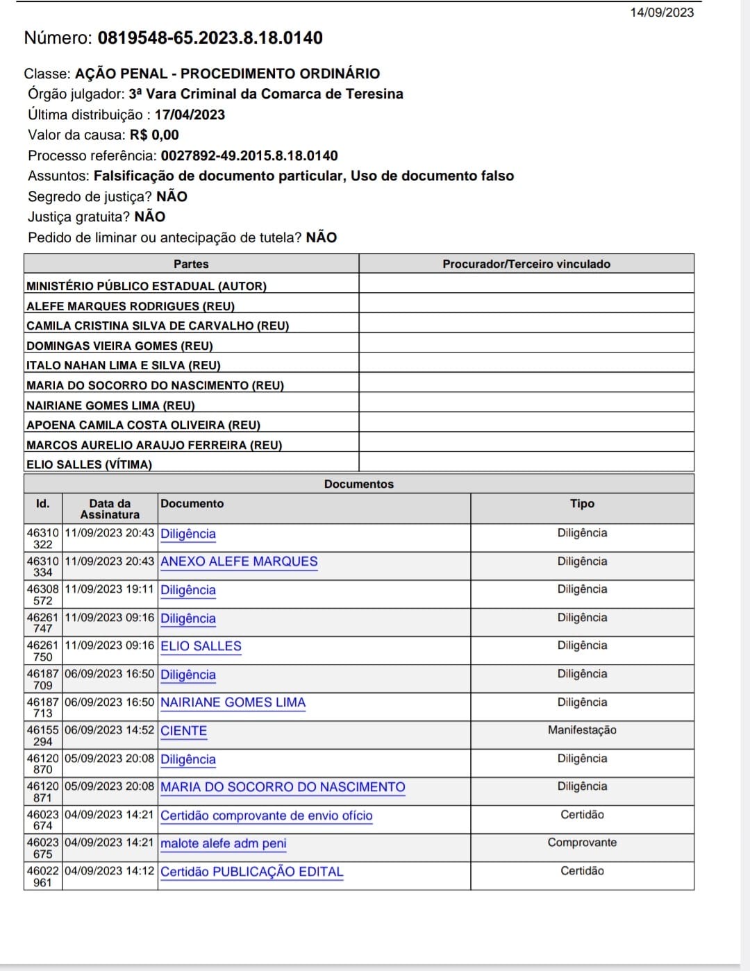 Apoema Camila Costa Oliveira é apontada como ré na lista de pessoas que fazem uso de documentos falsos, ela e outros, foram denunciados pelo Ministério Público Estadual.