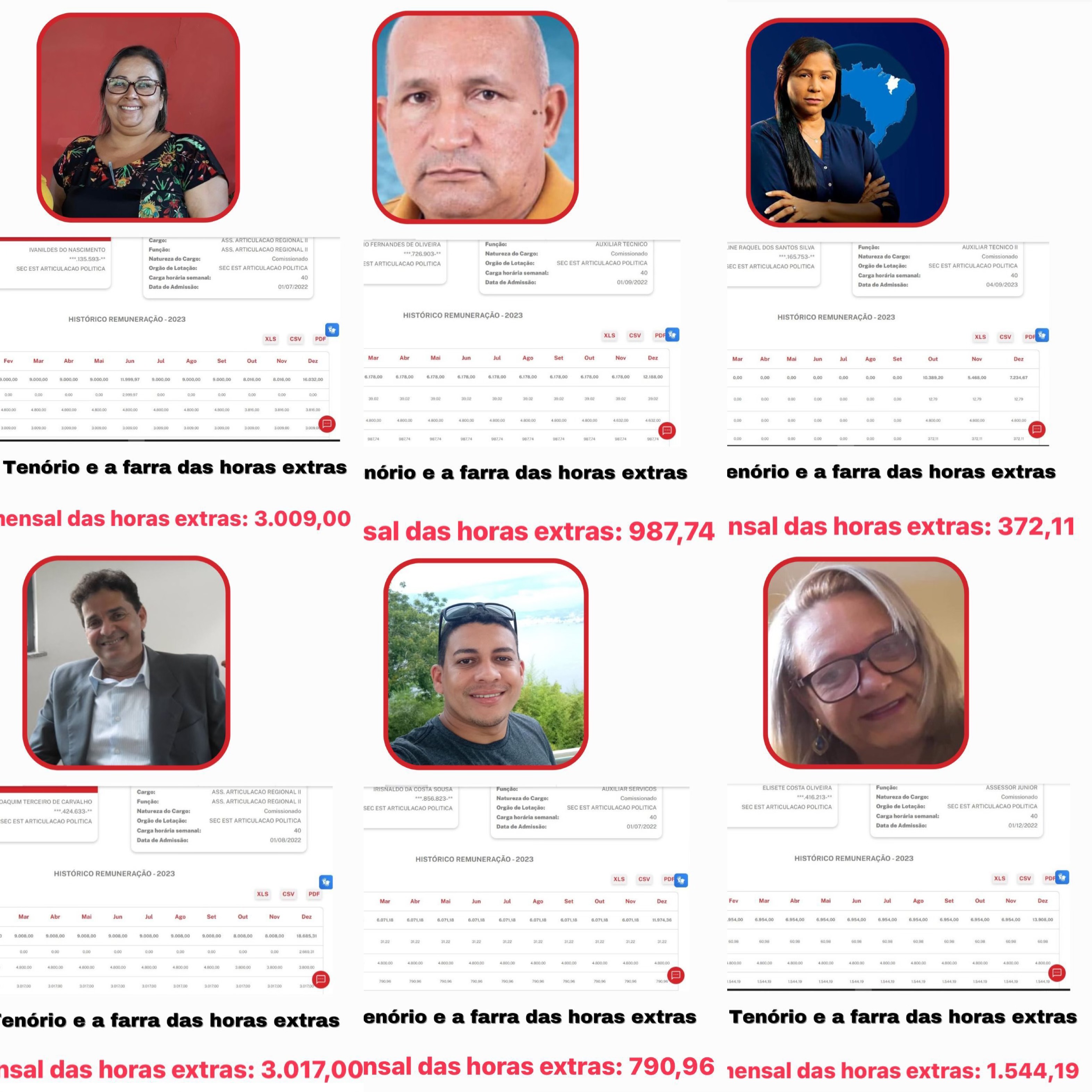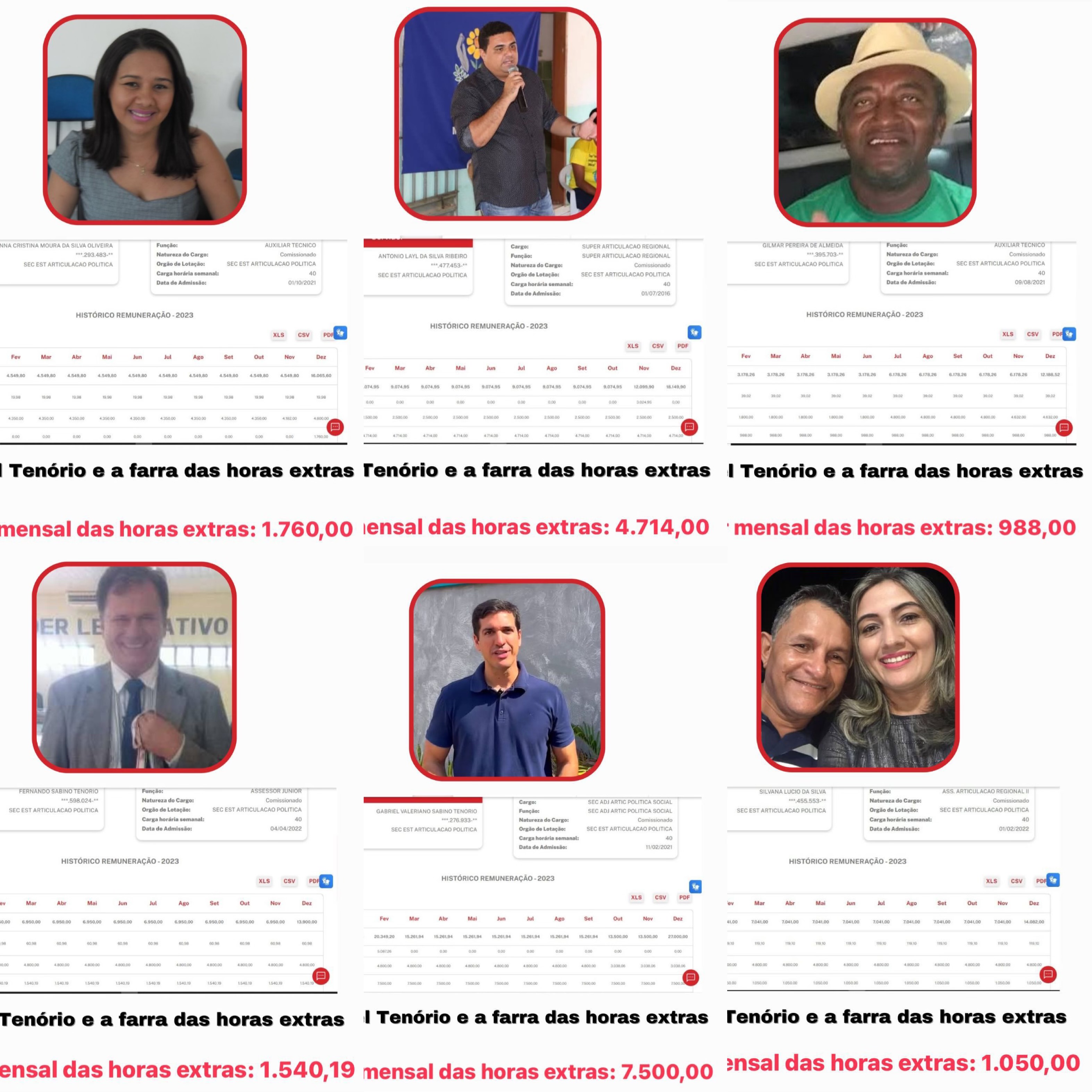 A suspeita levantada é de que esses recursos estejam sendo desviados para financiar a pré-campanha de Gabriel em Matões. A situação se agrava com a descoberta de aliados de Gabriel Tenório que, conforme os registros, recebem salários da SECAP sem prestar efetivamente nenhum serviço. Para tornar a situação ainda mais alarmante, esses aliados são contemplados com horas extras em seus vencimentos, mesmo sem desempenharem um dia sequer de expediente.