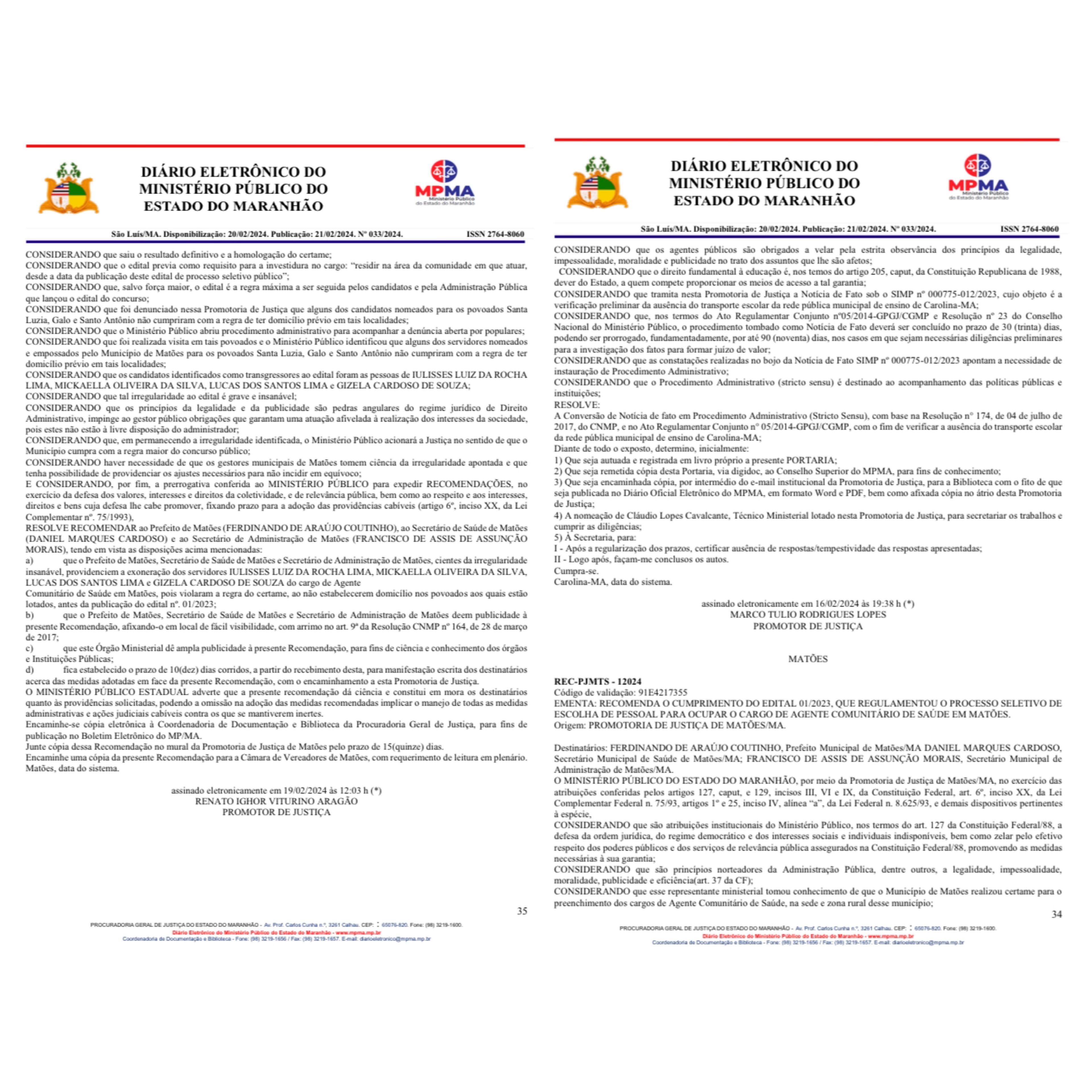 Após minuciosas análises e investigações, o Ministério Público do Maranhão confirmou a existência de fraudes por parte de alguns candidatos. Diante disso, o promotor Renato Ighor Viturino Aragão solicitou a exoneração de diversos candidatos implicados nas irregularidades, incluindo Mickaella Oliveira da Silva.