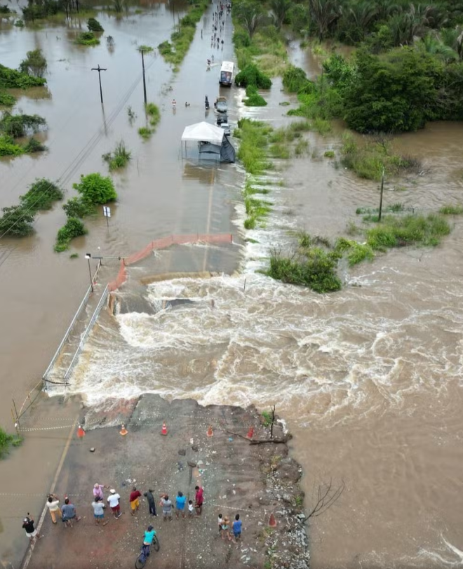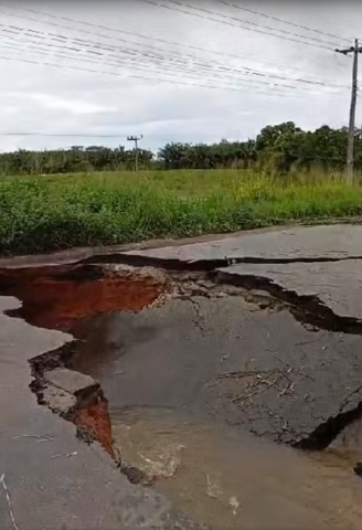 Outra rodovia impactada foi a BR-222, que já enfrentava dificuldades com trechos comprometidos pelas chuvas anteriores. Um dos pontos críticos encontra-se no km 598, em Bom Jesus das Selvas, onde uma cratera colossal surgiu no final de março.