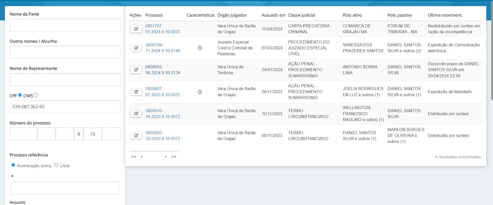 Porém, logo nas primeiras investigações já se constata que o nacional coleciona processos, inclusive criminal, em tramite contra a sua pessoa - PROC: 0800052-56.2024.8.10.0134 - Queixa Crime proposta pelo Sr. Antônio Borba Lima, que tem por objeto suposto crime de difamação e injúria ao querelante, que é Prefeito de Timbiras. Audiência designada para 29/07/2024 às 14h00min; PROC: