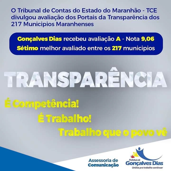 O Tribunal de Contas Estadual do Maranhão (TCE-MA) aprovou as contas da gestão da Prefeitura de Gonçalves Dias. A aprovação com a nota 9,06 consolida a gestão como transparente e responsável com o uso e a destinação dos recursos públicos no município. Um reconhecimento que evidencia o trabalho liderado pelo prefeito Toinho Patioba.