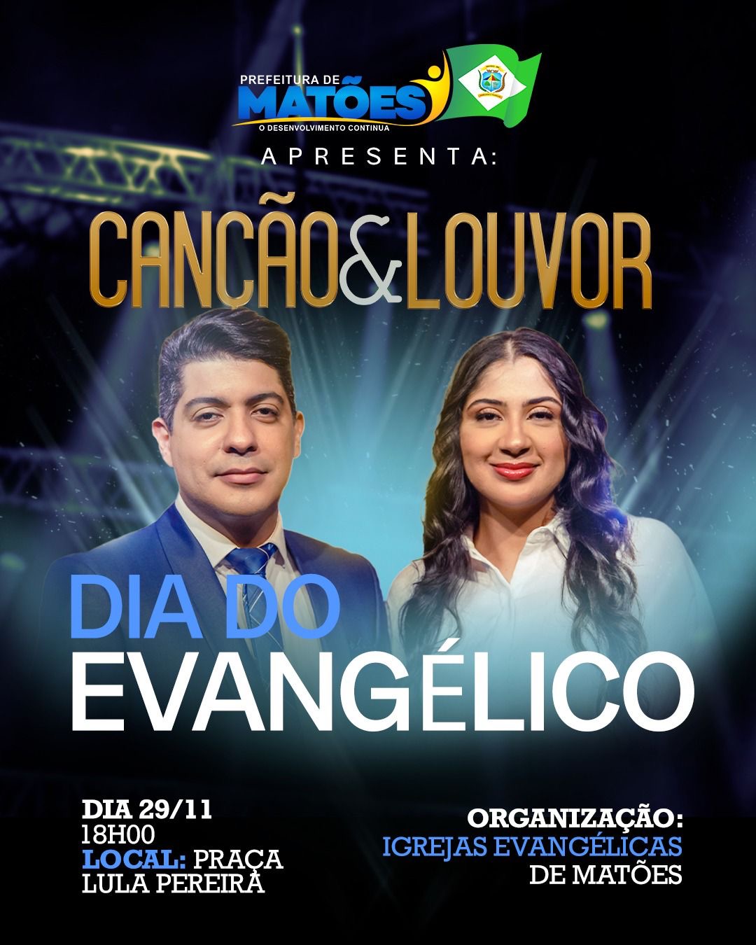 Uma organização das igrejas evangélicas de Matões, com o apoio da Prefeitura Municipal.Traga sua família, amigos e seu coração cheio de esperança. Vamos juntos elevar nossa fé.